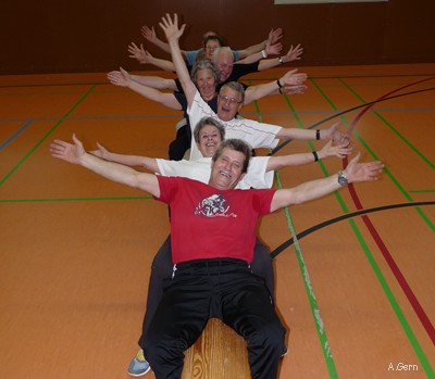 Schwerpunkte der Übungsstunden sind das Trainieren der Ausdauer und Kraft. Jedoch kommen auch Koordination, Spiele, Spass und geselliges Miteinander nicht zu kurz. |